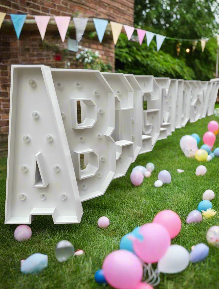 Make a bold statement at your next event with our 4ft Marquee Letters. This freestanding marquee letters will light up any event space. The marquee letters are made from high-quality materials and come in a sleek, modern design, are powered by an AC power cord, which ensures continued brightness throughout your event or display. This marque letters will shine bright all night long!